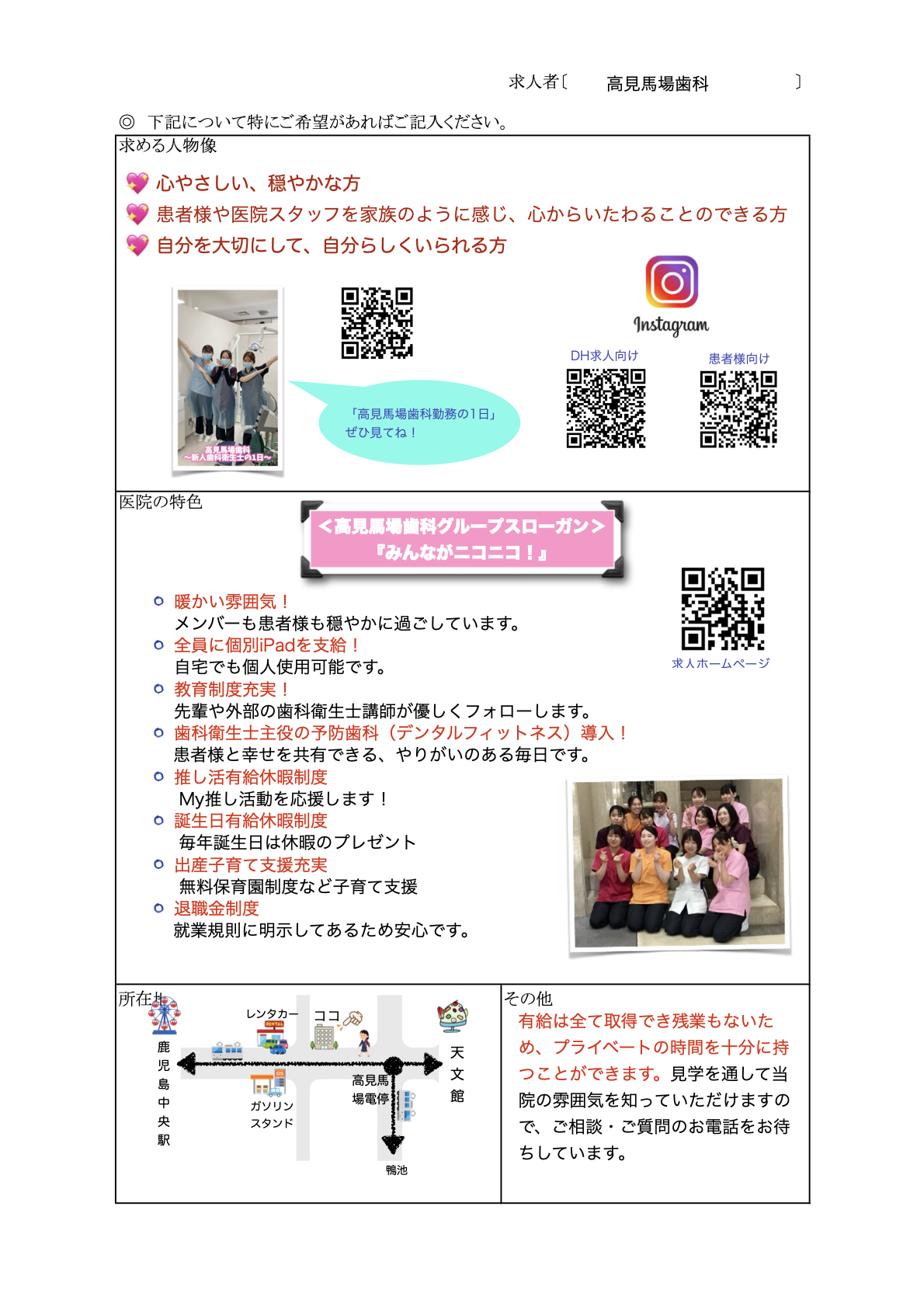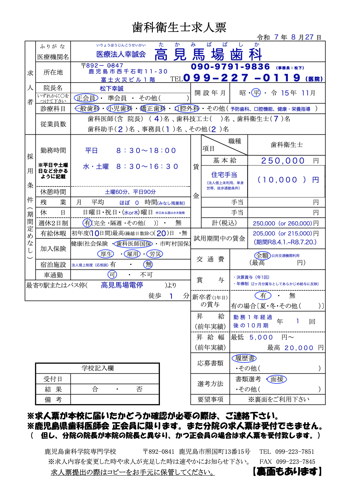 鹿児島歯科学院歯科衛生士科求人票1 (他校も条件同)
